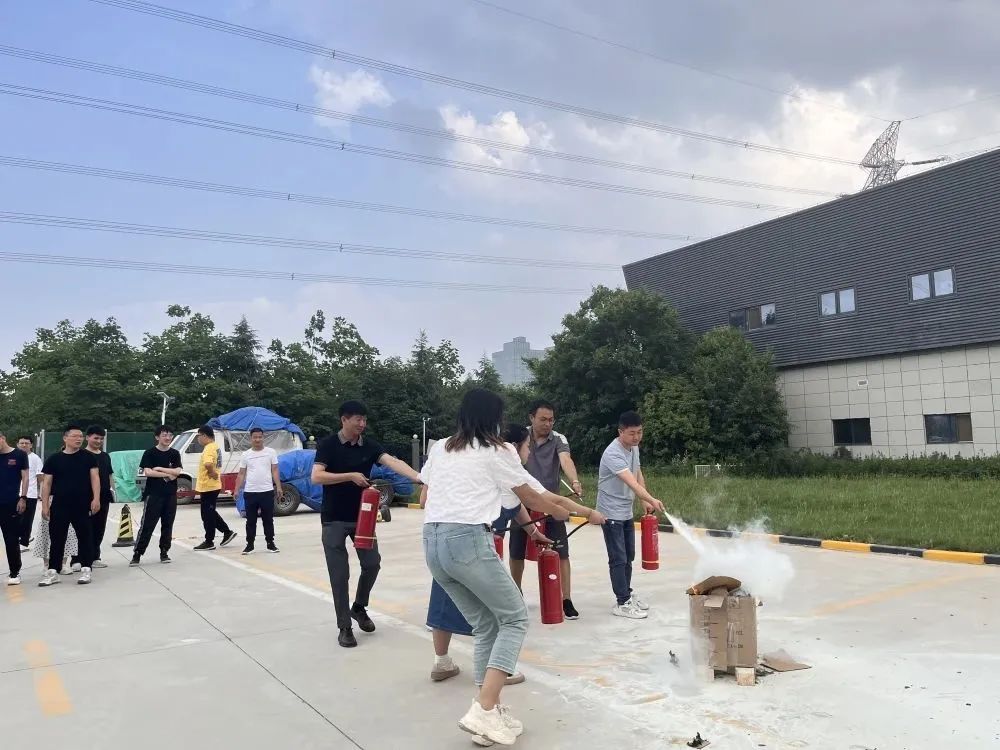 隨著消防警報聲響起,大家規(guī)范有序的下樓撤離至安全地帶,有條不紊的完成了本次應急演練。緊接著,賈教官生動演示了滅火器的使用方法,大家積極參與,認真配合練習。