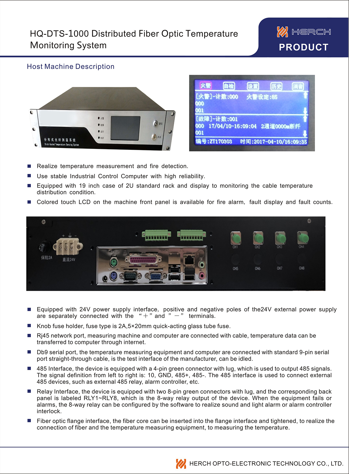 HQ-DTS-1000 Distributed Fiber Optic Temperature Monitoring System